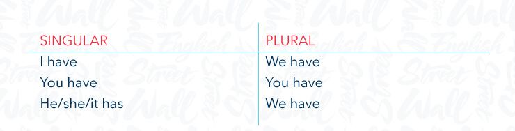 Like the verb ‘to be’, the verb ‘to have’ is an irregular verb. Here is the structure: