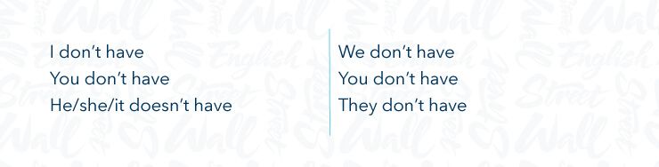 To make the negative form we add ‘don’t/doesn’t’ as we do with all other verbs, except the verb ‘to be’.