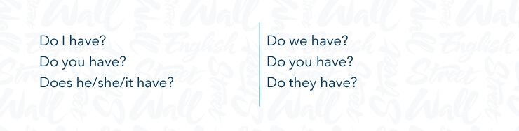 Like the verb ‘to be’, the verb ‘to have’ is an irregular verb. Here is the structure: