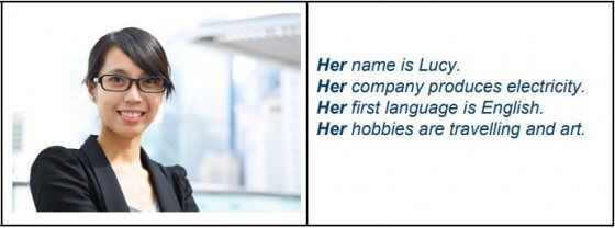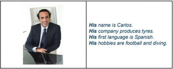 Remember that in English, nouns don’t have a gender and are therefore neither masculine nor feminine. So when we use ‘his’ we mean that the object is ‘of a man’, and when we use ‘her’ we mean that the object is ‘of a woman’. For example: